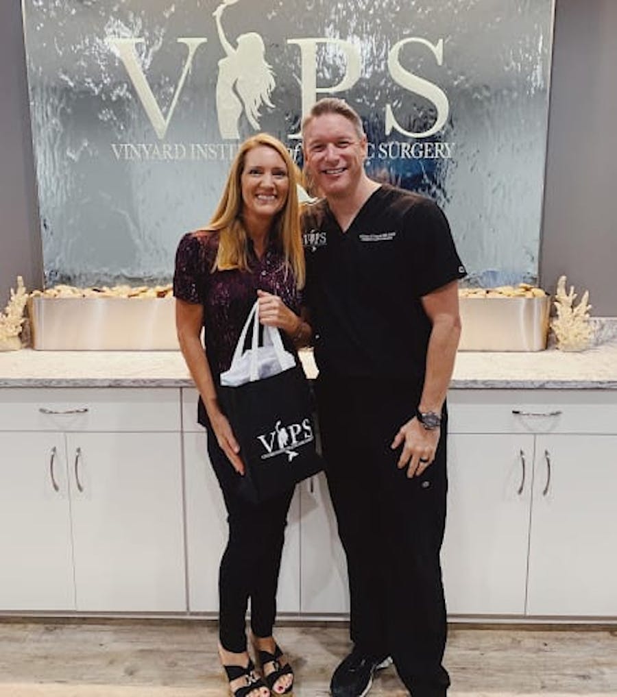 I had originally scheduled an explant surgery with an “explant specialist” and the wait was 2 years. I decided to look for other reputable doctors that would do a good lift with the explant and Dr. Vinyard was the one I found with great reviews and great before/after pictures. I had a consultation and was so pleased with the staff, facility and Dr. Vineyards knowledge and confidence in performing the surgery. I am so happy I decided to go with Dr. Vinyard and actually had another surgery 4 months after because I was so pleased with his work & the way his staff made me feel like family. I would 100% recommend VIPS over & over if you’re looking for a plastic surgeon that is going to deliver beautiful results.